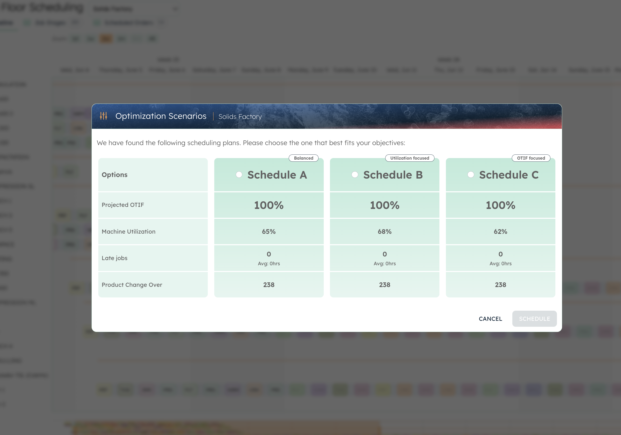Production Schedule Adherence: Shows how well manufacturing follows the demand plan.