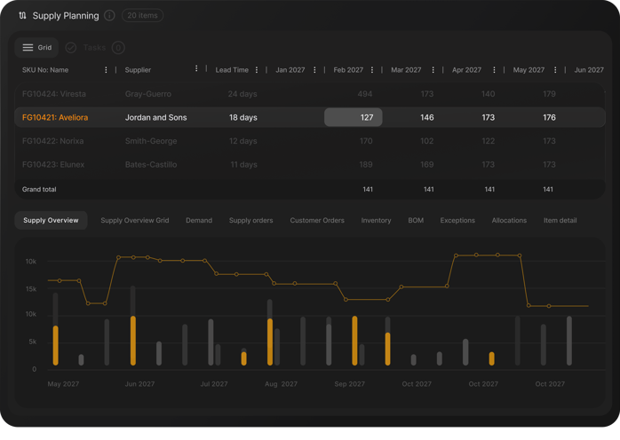 Automatically generate supply plans that reflect your business reality. Balance inventory costs and service levels across raw materials to finished goods, meeting demand without compromising your business goals.